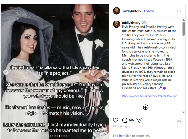 Priscilla je kasneje priznala, da je bil kralj roka obseden z njo – vedno je morala imeti enako frizuro, tako kot jo je zahteval. Vedno se je morala oblečti tako kot je želel, spati takrat ko je želel in jesti, ko je želel.