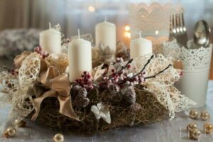 Kakšni so simboli adventnega venčka – ki jih morda ne poudarjamo dovolj? Pomembno je, da dventni venec leži, ne visi — to je kar zanimiv detajl. Statična lega nakazuje mir, notranjo pripravo, tišino, nasprotje vrveža decembrske komercializacije.