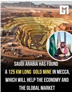 Savdska Arabija je pravkar sporočila, da je odkrila ogromno nahajališče zlata v rudniku Mansoura blizu Meke – gre za eno največjih odkritij v zgodovini te regije. Zlata žila oz. najdišče se razteza čez 125 kilometrov in je polna visokokakovostne rude.